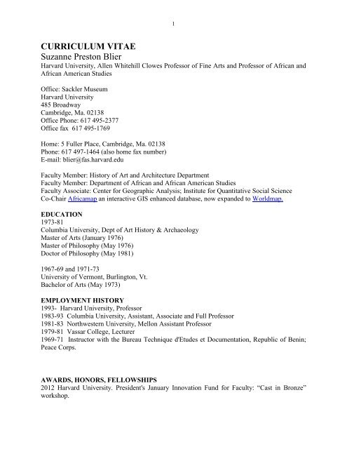 Curriculum Vitae Suzanne Preston Blier Department Of